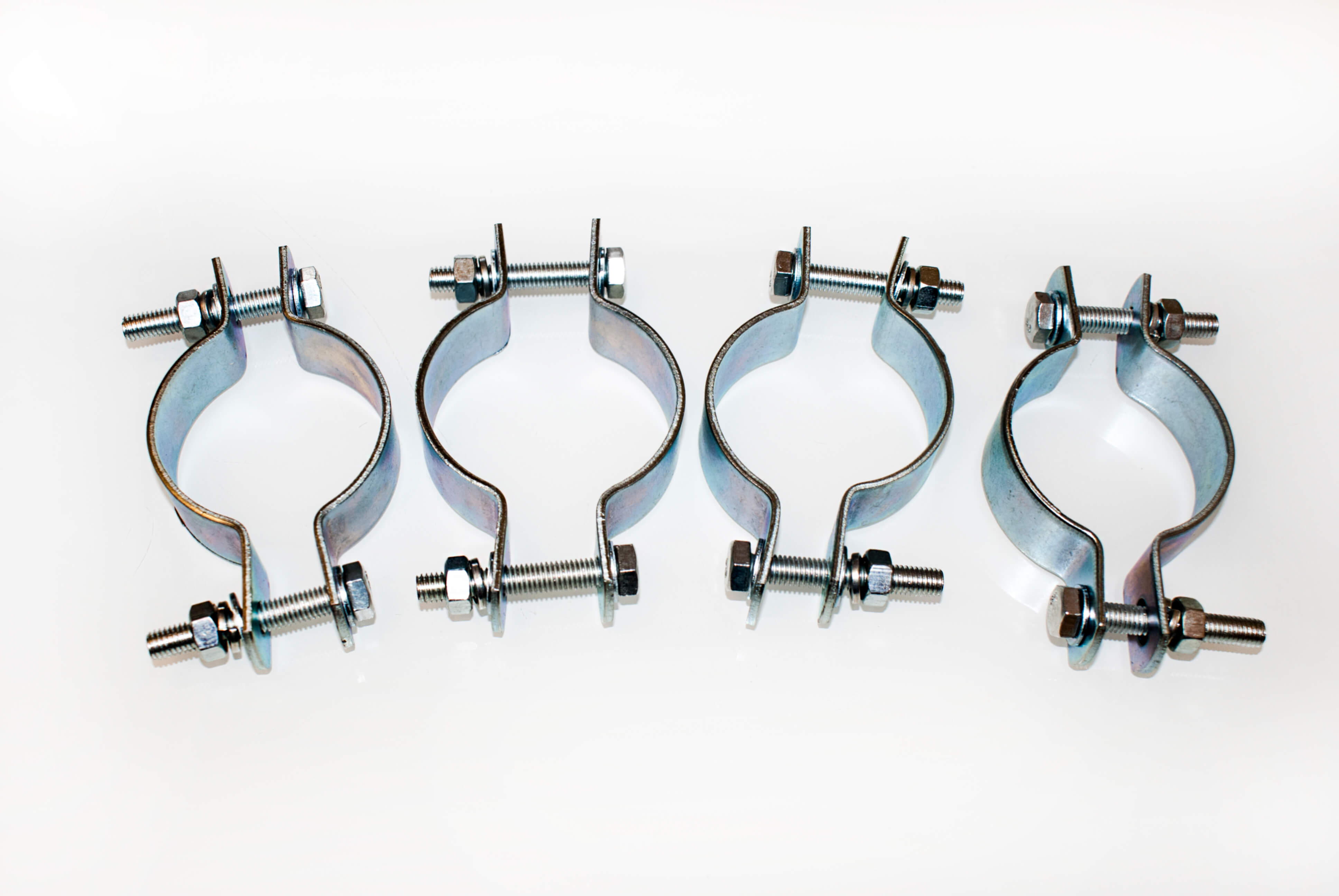 Для удобства монтажа предусмотрено эллиптическое отверстие с одной стороны хомута. Из-за технологических неточностей (отклонений) изготовления опор или наплывов цинкового покрытия, эллиптическое отверстие обеспечит максимальную степень надежности крепления метизов. Все изделия изготовлены в соответствие с действующим ГОСТ. Хомуты состоят из двух половинок полукругов, которые соединяются между собой двумя болтами М8.